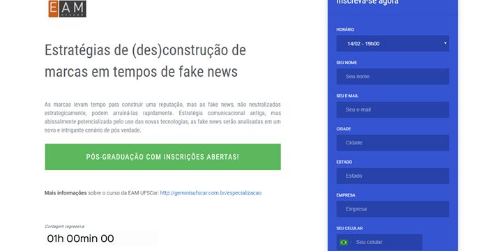 Ainda dá tempo de se inscrever na aula “Estratégias de (des)construção de marcas em tempos de fake news” que ocorre agora às 19hs com a Profª Sylvia Iasulaitis.