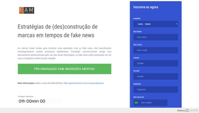 [ad_1] INSCREVA-SE PARA A AULA 02 DO CURSO ONLINE GRATUITO EAM! Na próxima semana teremos a aula “Estratégias de (des)construção de marcas em tempos de fake news” dia 14.02 (quinta-feira) às 19hs com a Profª Sylvia Iasulaitis. Para fazer sua inscrição e receber o link basta acessar: https://webinar.center/join/ZHX56739 Todos os conteúdos dessas aulas se relacionam…