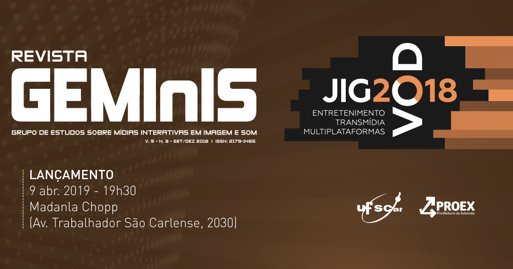 O Grupo de Estudos sobre Mídias Interativas em Imagem e Som (GEMInIS) convida a todos para o lançamento da nova edição online da Revista GEMInIS v. 9 n.3. O lançamento ocorrerá no dia 09 de abril (terça-feira), às 19h, no Mandala Chopp – Av. Trabalhador São Carlense, 2030.