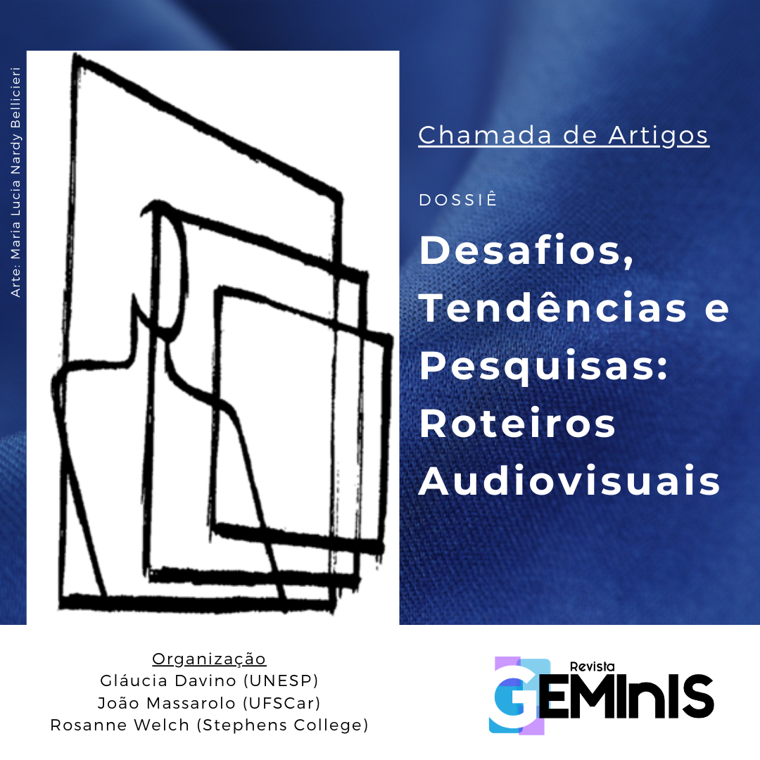 A Revista GEMInIS está com chamada aberta até o dia 14/03/2021 para artigos, resenhas, entrevistas e ensaios destinados ao dossiê temático “Desafios, tendências e pesquisas. Roteiros Audiovisuais”, tendo como coeditores temáticos os professores Gláucia Davino (IA/ UNESP, SP), João Massarolo (Imagem e Som/UFSCar) e Rosanne Welch (Stephens College MFA in TV and Screenwriting).