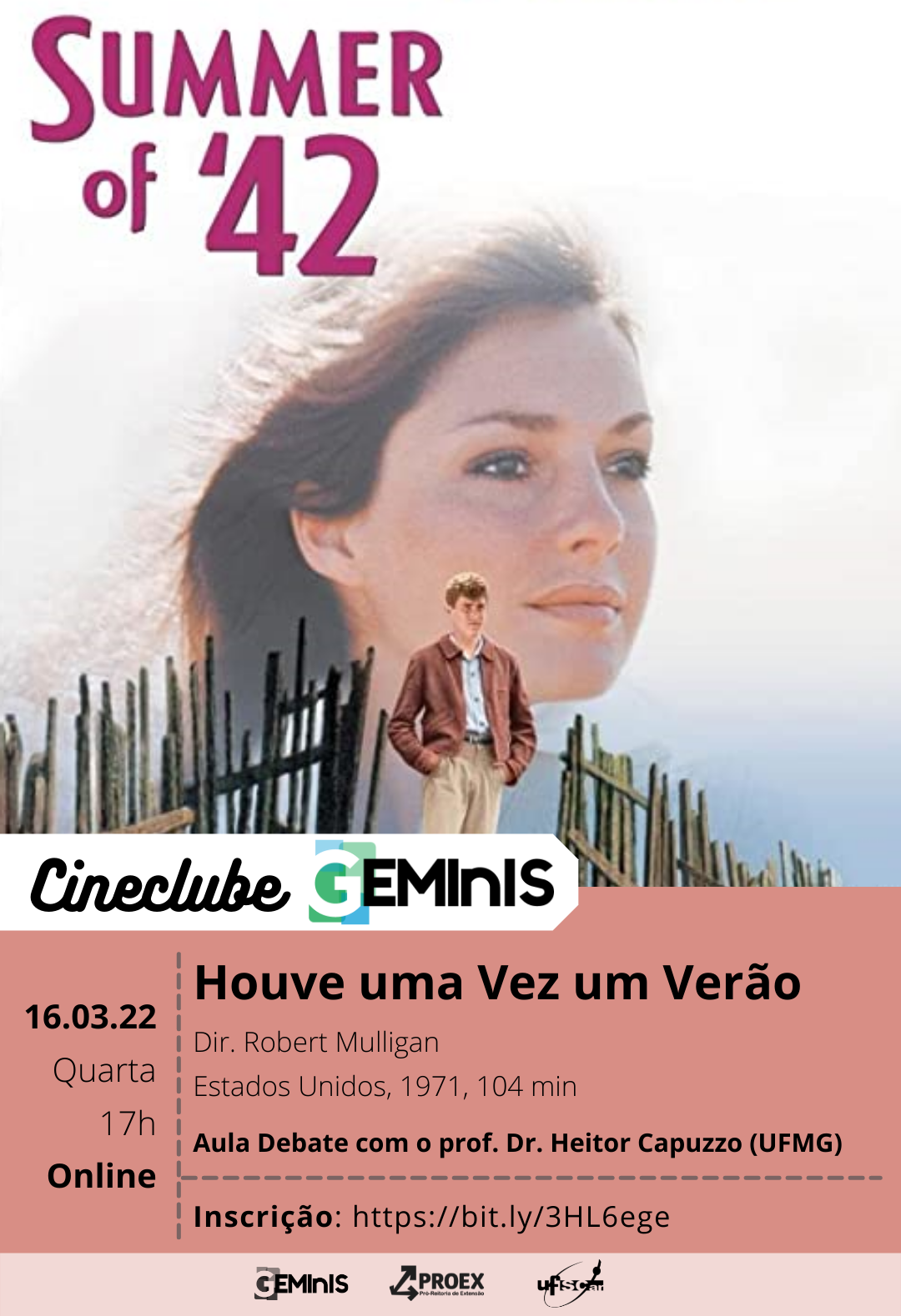 No dia 16/03/22 (quarta-feira), às 17h, o Cineclube GEMInIS realizará uma aula debate sobre o filme “Houve uma vez um verão” (1971, EUA, 104min), do diretor Robert Mulligan. A obra traz como ponto de partida as memórias do escritor Herman Raucher sobre o seu primeiro verão após a entrada dos Estados Unidos na Segunda Guerra Mundial. Se o país mudou abruptamente com o ataque a Pearl Harbor, o jovem Hermie também, no plano pessoal, irá passar por uma dolorosa e intensa experiência que o marcará para sempre.
