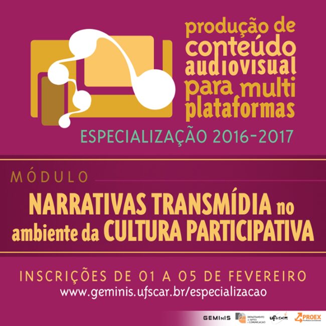 [ad_1] NARRATIVAS TRANSMÍDIA NO AMBIENTE DA CULTURA PARTICIPATIVA Você já ouvir falar de storytelling transmídia? Na Especialização em Produção de Conteúdo Audiovisual para Multiplataformas da UFSCar você terá a oportunidade conhecer todos os pressupostos (teóricos e práticos) para a organização e criação de narrativas visando o entendimento da construção de narrativas para multiplataformas, bem como…